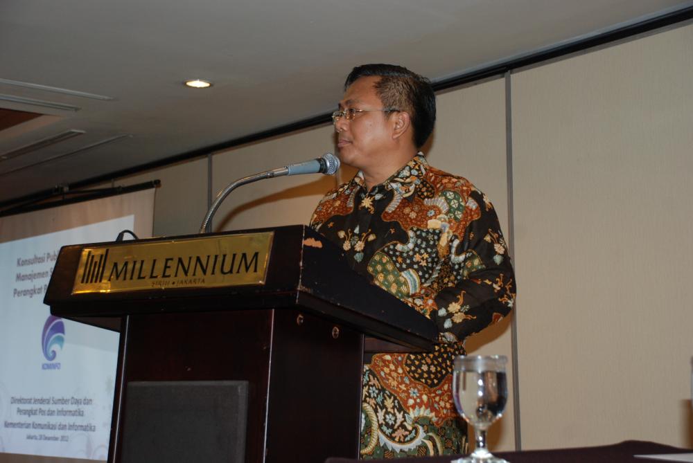 Jakarta – Selasa, 18 Desember 2012 Direktorat Operasi Sumber Daya telah melaksanakan “Konsultasi Publik dan Workshop Manajemen Sumber Daya dan Perangkat Pos dan Informatika†bertempat di Hotel Millenium Jakarta, yang dibuka secara resmi oleh Bapak Dirjen SDPPI.