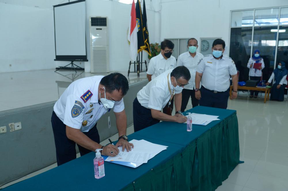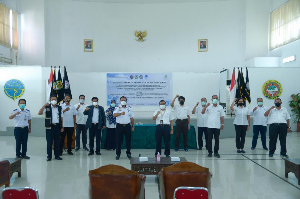 Direktur Operasi Sumber Daya Dwi Handoko dan Kepala BP2TL Kapten Heru Susanto, Senin 21/6/2021), mewakili kedua lembaga dalam penandatanganan PKS yang bertajuk Sinergitas Pelaksanaan Kegiatan Diklat (Bimtek) dalam Peningkatan Kemampuan SDM Operator Radio Komunikasi Non Konvensi Solas di Bidang Pelayaran pada Kegiatan Diklat Pemberdayaan Masyarakat.