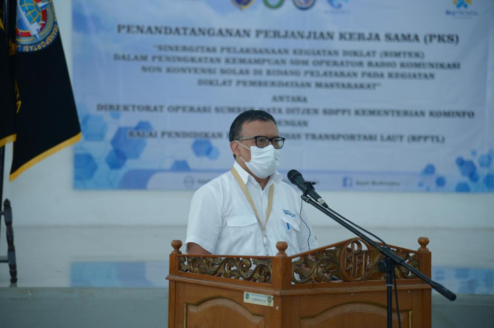 Jakarta (SDPPI) – Direktorat Operasi Sumber Daya Direktorat Sumber Daya dan Perangkat Pos dan Informatika (Ditjen SDPPI) Kementerian Komunikasi dan Informatika melakukan Perjanjian Kerjasama (PKS) dengan Balai Pendidikan dan Pelatihan Transportasi Laut (BP2TL) Kementerian Perhubungan.
