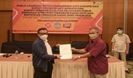 “Tujuan kita bukanlah sekadar predikat di atas lembaran kertas itu, melainkan kami ingin benar-benar komit mewujudkan integritas layanan,” kata Direktur Operasi Sumber Daya Dwi Handoko, saat membuka kegiatan Public Campaign Sistem Manajemen Anti Korupsi, Survey Persepsi Anti Korupsi dan Kualitas Layanan Publik Perizinan Spektrum Frekuensi Radio (SFR) dan Sertifikasi Operator Radio (SOR) Tahun 2021, Selasa (09/03/2021).