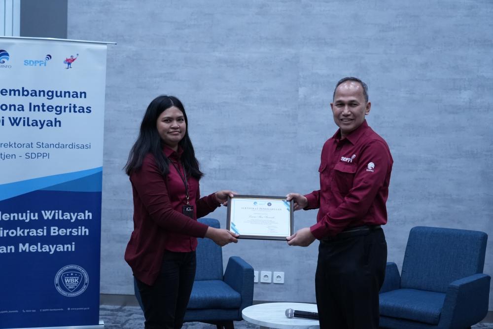 Pembangunan Zona Integritas di Direktorat Standardisasi PPI, Ditjen SDPPI telah berhasil mendapatkan pengakuan dari Kementerian PANRB dengan diberikannya predikat Wilayah Bebas Korupsi (WBK) pada tahun 2021.